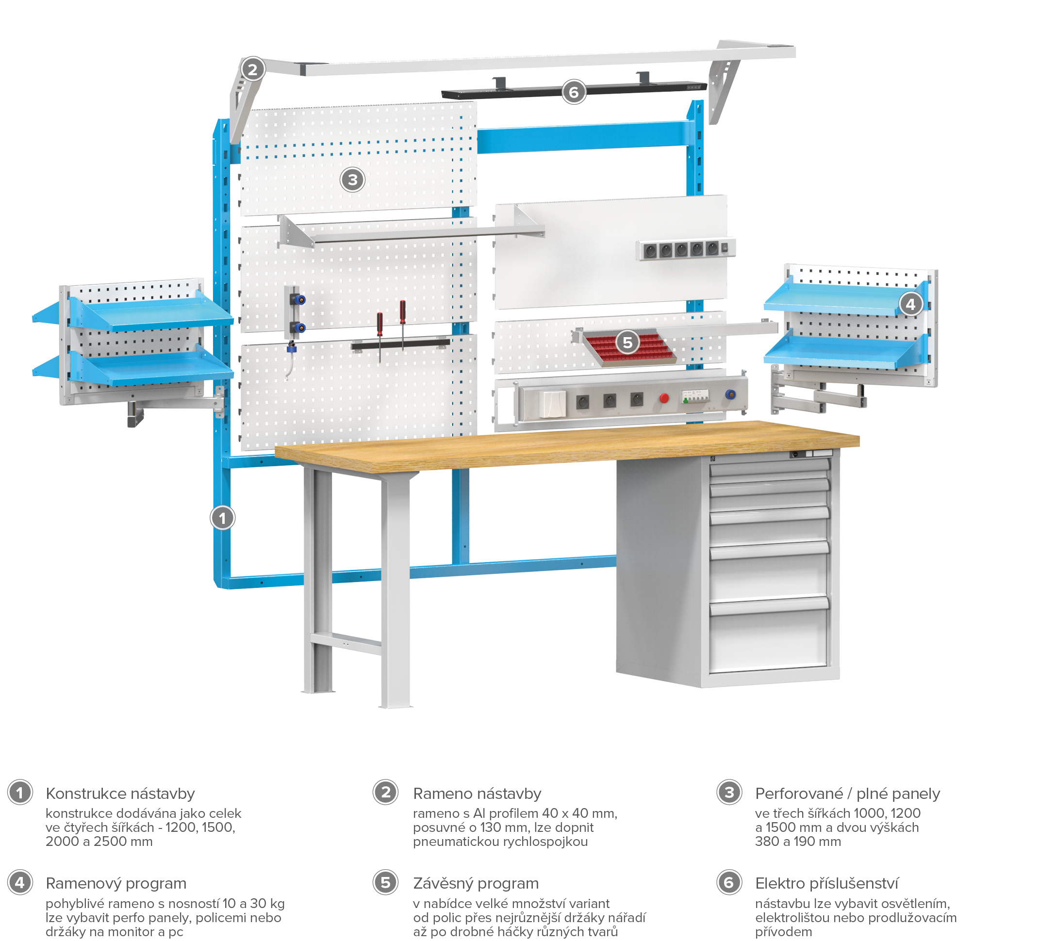 Na takto pripravenú nadstavbu pracovného stola môžete ľubovoľne umiestňovať ďalší sortiment: