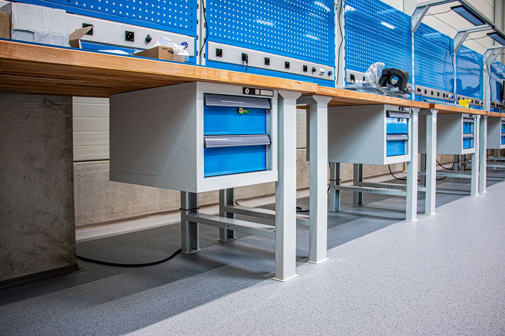 Modulárne stoly sú v produkcii pracovného nábytku POLAK najťažšie štandardne dodávané stoly (veľký zváranec 100-230 kg), preto sú ideálne pre prácu s ťažkými materiálmi či nástrojmi. Skladajú sa z jednotlivých modulov, ktoré sa opäť systémovo vybavujú radom zásuvkových skriniek, dvierok, delenia a pod. Vyrábame stoly o šírke 1500 mm, 2000 mm a 2500 mm.